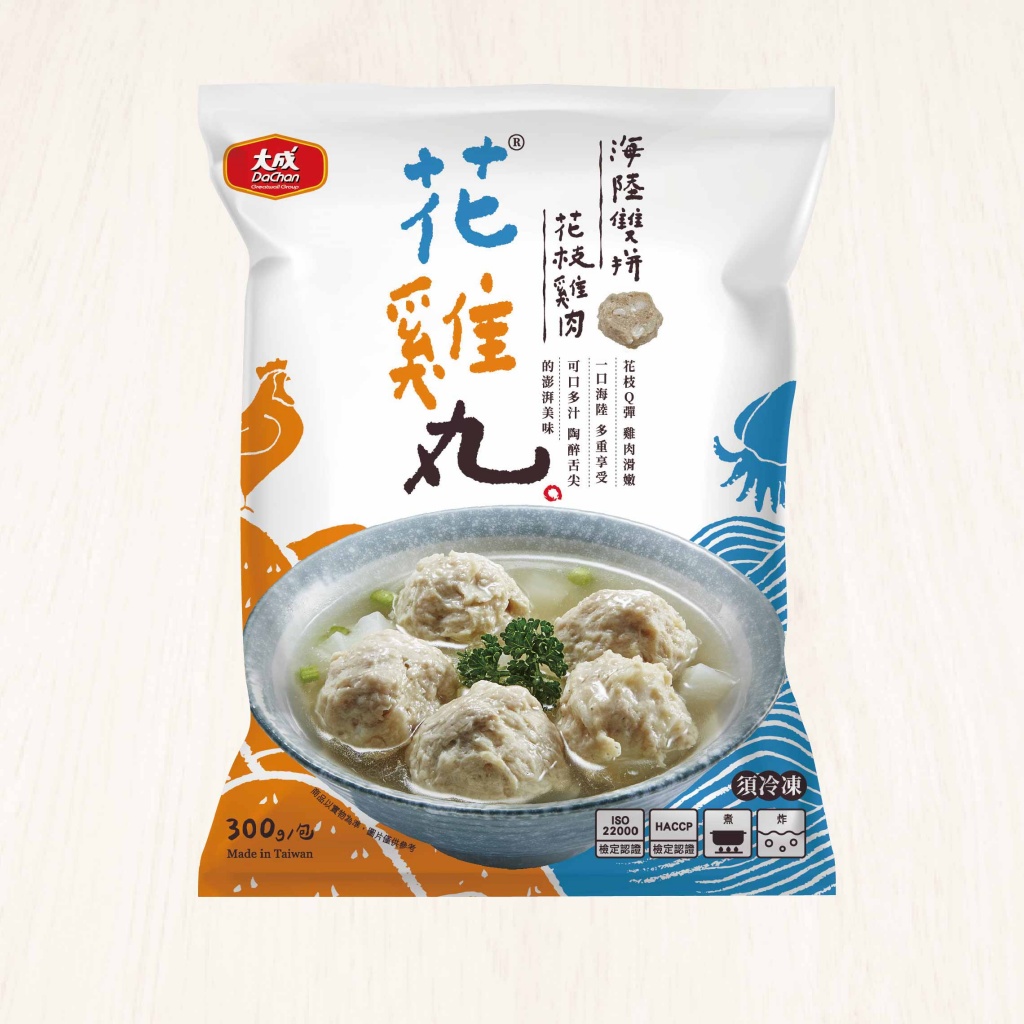 「花雞丸」品牌的創(chuàng)立起因於人員觀察臺(tái)灣家庭與火鍋餐飲市場(chǎng)丸類食用需求大增,惟原料及加工衛(wèi)生品質(zhì)一直被國(guó)人所擔(dān)憂,故決定以自身雞肉管理優(yōu)勢(shì),採(cǎi)用安全檢驗(yàn)過的雞肉與魚肉原料,經(jīng)過無(wú)數(shù)次口感與配方打樣調(diào)整,終於開發(fā)出了兼具雞肉咬感和海鮮Q彈的獨(dú)特口感、以「海陸雙拼、一次滿足」做為主打的全新創(chuàng)意丸類新品,並於2018年底推出第一款「花枝雞肉」口味丸子,成功打入眾多量販超市及餐飲市場(chǎng)!