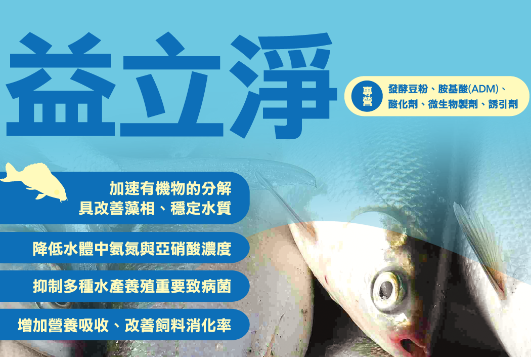 - 益立淨:水產(chǎn)益生菌,降低水體氨氮與亞硝酸濃度、抑制多種病原菌、加速有機物分解、耐高溫、高鹽度